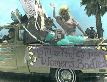 Nikki Craft has lived a notorious life of creative political activism including performances of street theater and acts of civil disobedience. In addition to taking on sexual abusers of children and the Naturist Movement for their alliance with child molesters and incest perpetrators, she has confronted corporate pornographers, "beauty industry" pimps, and social libertarians. Nikki has a long history of challenging oppressive conventional mores, summed up in one of her many group's names: NO STATUS QUO. She has become internationally recognized for her politically courageous demonstrations and unprecedented, dramatically outrageous street-theatre over the past several decades.1 She is also known as a radical feminist who has worked through the so-called Second and Third Waves, though she has said, "My politics are much broader than that." Over the last thirty-five years, she has been a maverick grassroots political activist, visual artist, and writer who is known for her ground-breaking and ingenious approaches to challenging a broad spectrum of social, economic, environmental, and political injustices. She is a radical environmentalist who believes catastrophic climate change does exist, that polar bears and bees are headed for extinction perhaps in our lifetime, and that cell phones were wrongly approved before proper testing and that they put out electromagnetic pollution that is dangerous to all life on this planet. Since the mid-1970s, Craft has protested against the stultifying views of femininity promulgated in sexist, racist beauty pageants and has documented and resisted the racist misogyny of pornography. She was one of the first feminists to defy nudity laws by insisting that women who chose to do so should be able to go shirtless in public, thereby rejecting the premise that the publicly exposed breast should be reserved for male consumerism and voyeurism. She has also been both a participant in the Naturist movement and an investigator of sex offenders within Naturist and nudist environments. Her activism has always been strategically powerful, employing her distinctively witty and wicked sense of humor [ref SJM]. Sometimes with regard and often with utter humorlessness, Nikki Craft has been called many things including the following monikers, terms and adjectives: the b and c words (too many times to count), of course; irrational; stupid; obnoxious; an audacious prankster; provocative; incendiary; impetuous; blatant; brilliant; awesome; little miss naughty; sassy; saucy; wickedly witty; a firebrand; a goddess; the devil; a bad ass; an outlaw; the queen of photoshop; a female charles mason; she has been told she "puts the Civil Liberty in ACLU" and last but not least named: a one woman wrecking machine out to right the wrongs for the animals who can't speak for themselves! To name only a few... Civil Disobedience with a media focus Over the decades she has been arrested 50 times for acts of civil disobedience. For these intentional confrontations with the laws which undergird an inhumane status quo, she has been recognized by numerous academic experts on the subject; they regard her work as noteworthy when teaching various approaches to utilizing civil disobedience. By 1990, after the stupidification of the increasingly conglomerated media, she realized utilizing them to communicate the real harm of social injustice was a waste of time. By that time, though, the Internet was available and this communication tool gave her an unregulated environment in which she could maintain appropriate control over the content of her own published work.